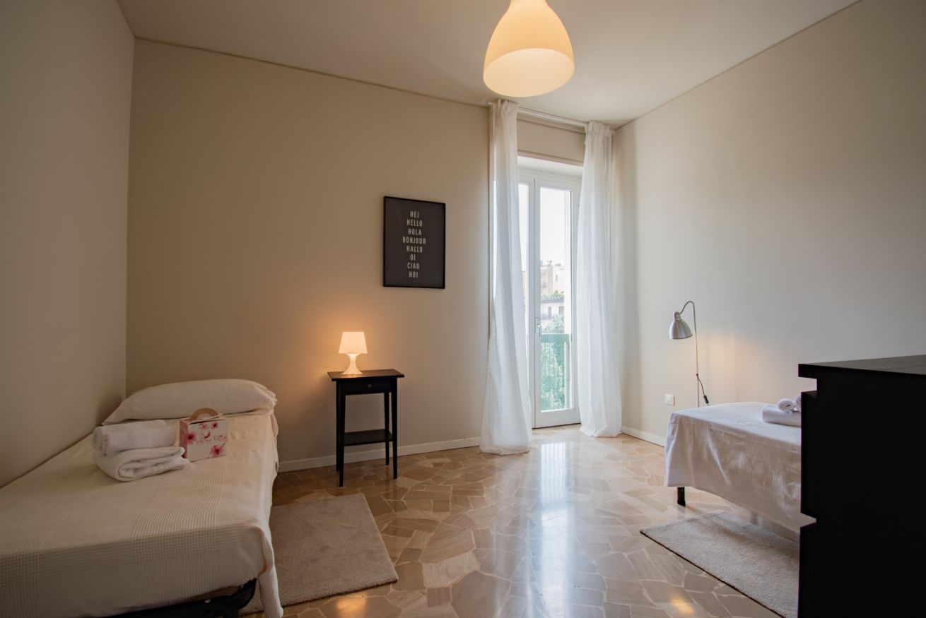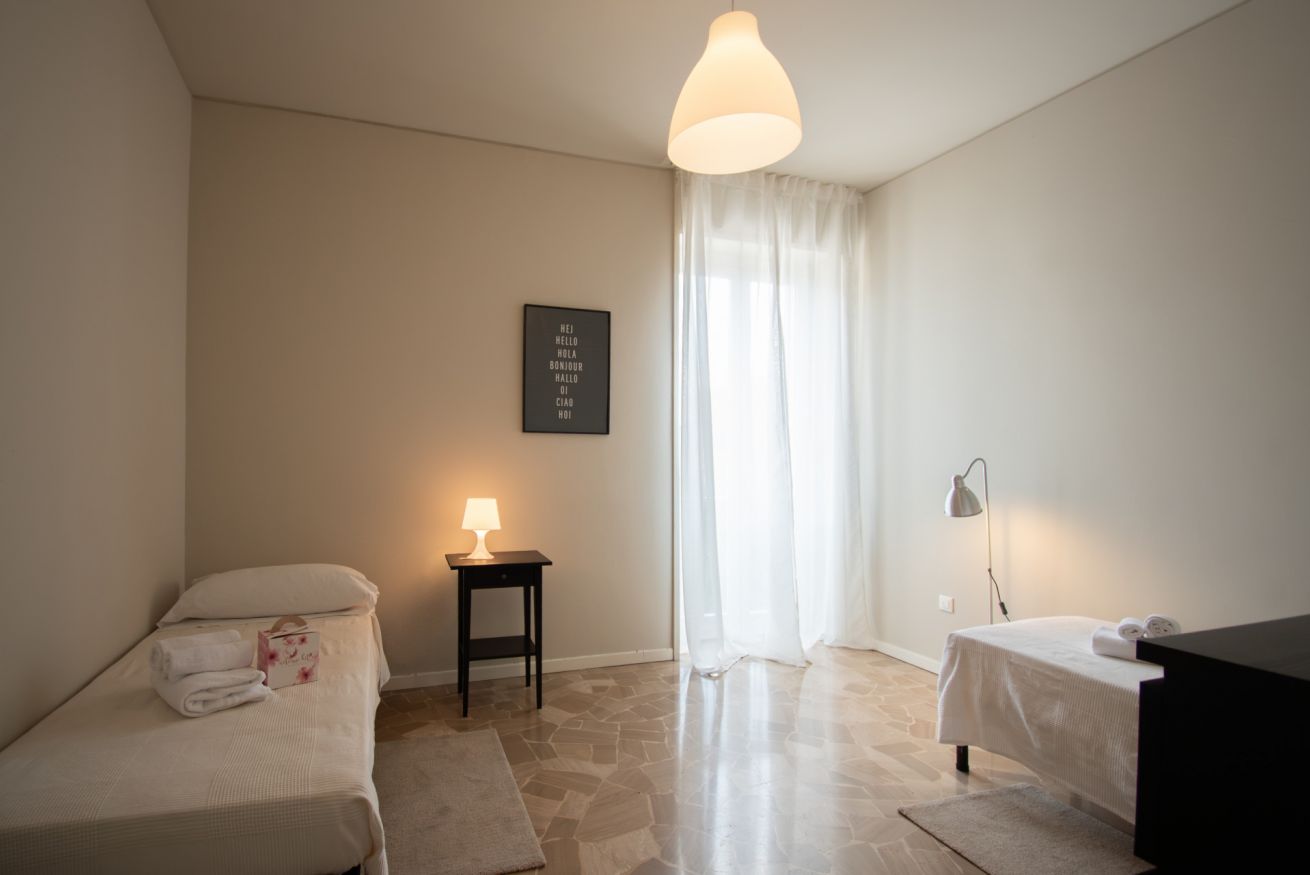 Le due camere da letto offrono un ambiente sereno per il riposo, grazie al letto matrimoniale in una stanza e ai due letti singoli nell'altra.